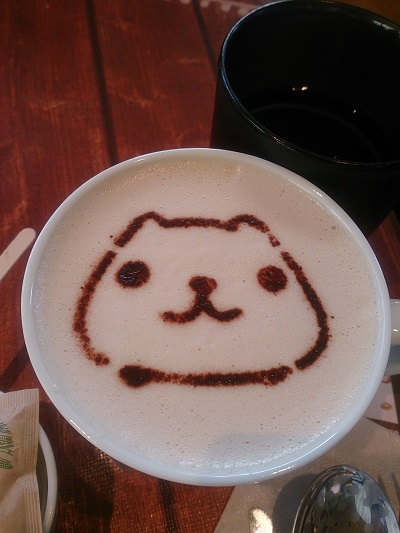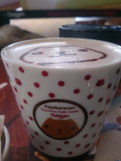 メニュー。カピバラさんラテ。マグカップも当然カピバラさん。このマグは販売しているそうです。