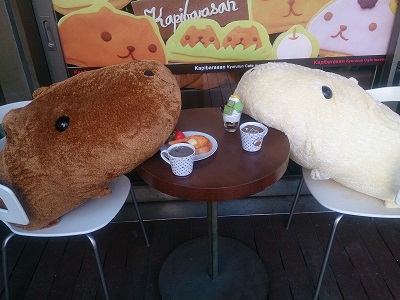 店内では、カピバラさんヌイグルミを貸し出してくれるようです。私は持ってきませんでしたが。