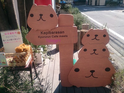 ではでは早速、カピバラさんカフェの雰囲気を。外の看板。看板もカピバラさん。