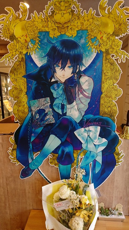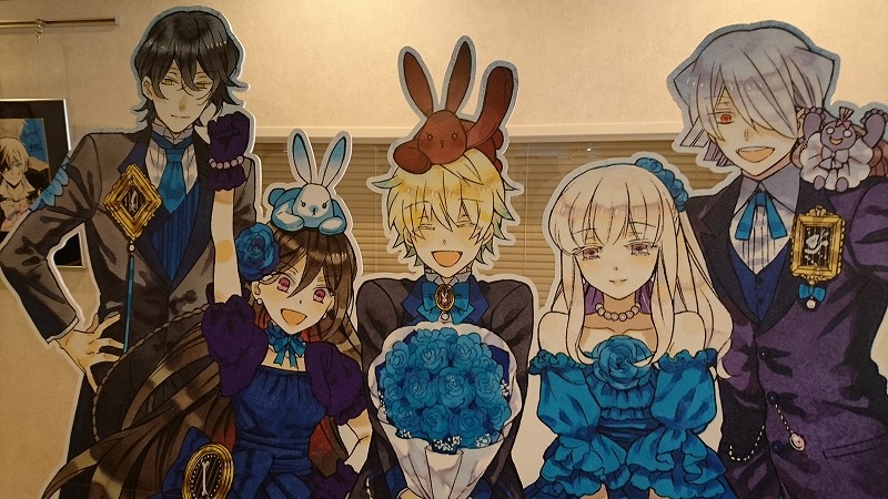 4コマやパンドラハーツの求人が飾られていました。鏡もパンドラ仕様の飾りつけ!