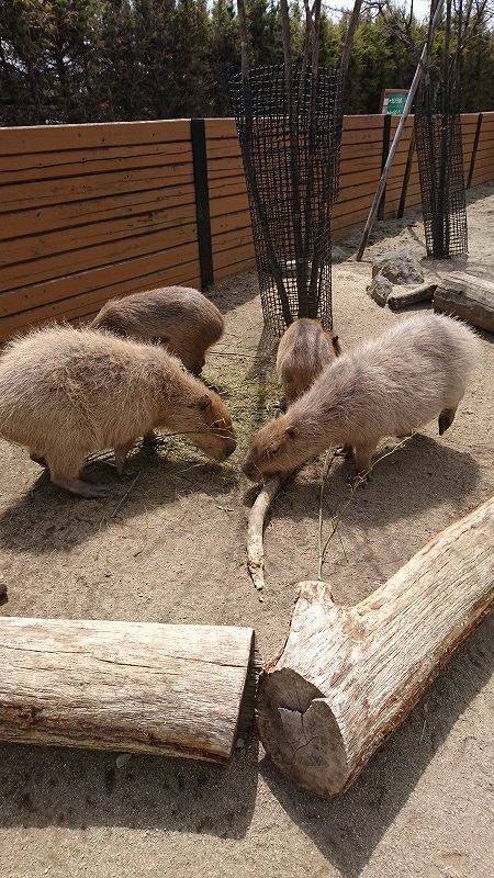 赤ちゃんは触れませんが、他のカピバラは触れます!
