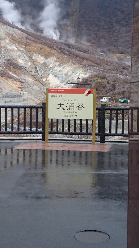 2日目はちょっと天気が悪かったですが、日曜日ほどの人はなく、登山鉄道にのりながら大涌谷へ。乗り換えでロープウェイにのっていきました~。大涌谷は噴火してましたが、16時までなら見られるみたいです。