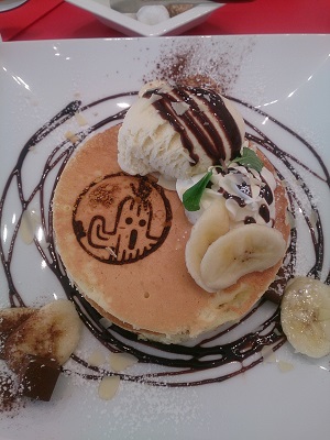 チョコレートパンケーキ。こっちはサボテンダー。ちなみに、スライムパンケーキもありましたが、残念ながら無いとの事で、旦那はこっちにしました。
