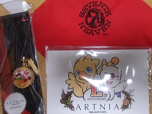 戦利品達。紙ナプキンはパンケーキを頼んだ時についてきましたが、なんとFF7のあのロゴ。全部FFやドラクエ絡み♪