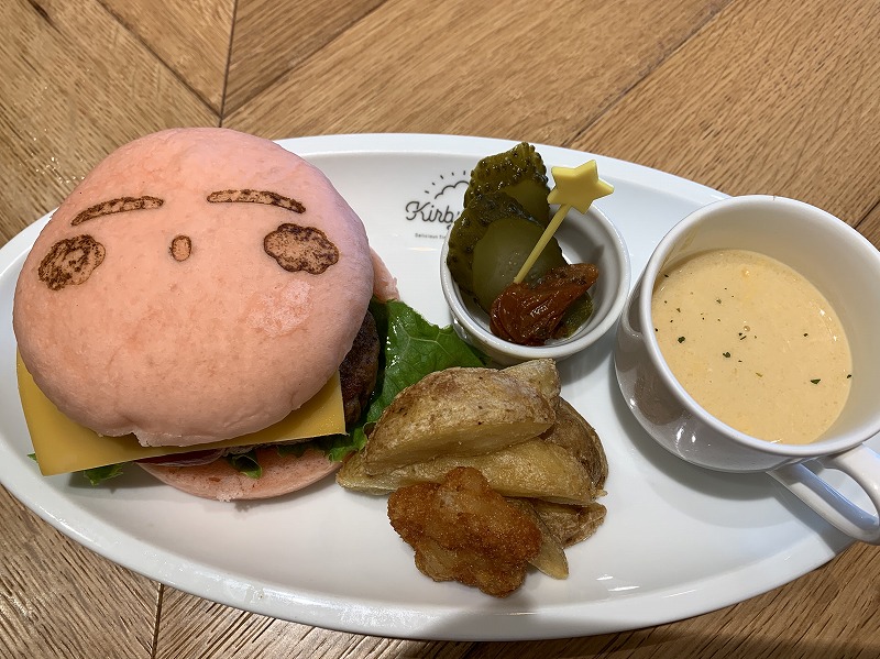 料理はハンバーガーとカフェオレ。ハンバーガーは表情が前と違ってました。色々バージョンがあるのかな?